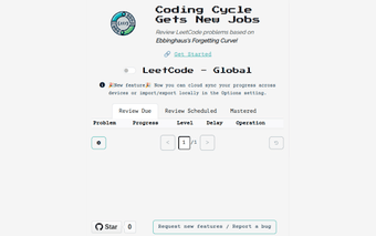 CodeCycle, LeetCode problemlerini daha etkili bir şekilde çözmenizi sağlayan bir Chrome uzantısıdır. Ebbinghaus'un Unutma Eğrisi'ne dayanarak, öğrenme sürecinizi optimize eder ve kişiselleştirilmiş bir tekrar takvimi oluşturur. PMCA'nın temelini alarak, hem gündelik öğrenicilere hem de mülakat hazırlığı yapanlara hitap eden bir deneyim sunar.